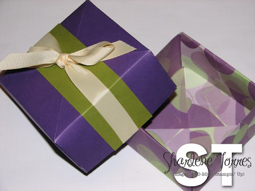 I made this origami box last night, and while it has no stamping, I thought it was so cute that we are doing to be doing them at Stamp Club this month as one of our projects (made with Au Chocolate designer paper with some real chocolate inside of course - no box is complete without chocolate in its name and inside!).