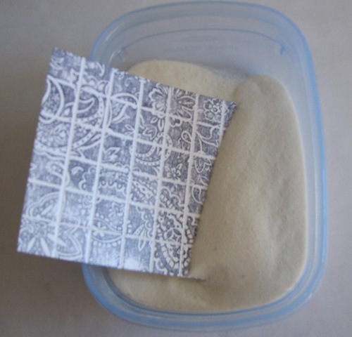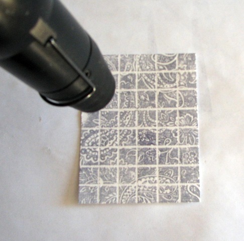 Cover the Versamarked cardstock with clear embossing powder and then heat with your heat tool until it is melted and shiny. This has now given your tile a glazed tile look - very cool, eh??