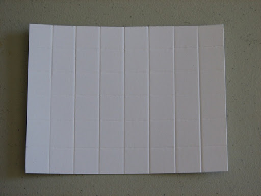 By now you will have a piece of cardstock that looks something like this. You should have equal sized squares (or "tiles") from one side of your cardstock to the other.
