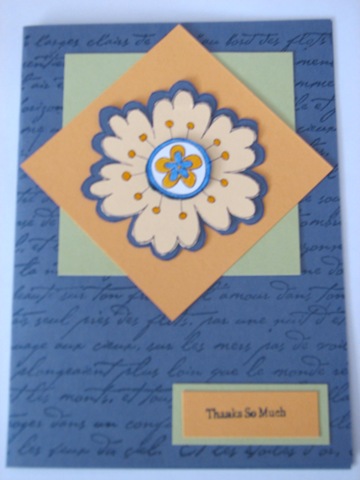 The 3rd card is from one of my downline, Miriam Oliver (Hi Miriam!!). She is so sweet - she sent me a thank you card for a little promotion gift I gave her. I love getting cards ...