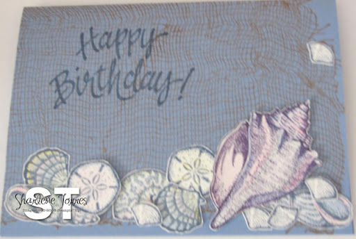 The 2nd one was for Harry's birthday. How cool a friend is she - she even remembers Harry's birthday! She used STIPPLED SHELLS that is about to retire. I have loved this set since Kim started sending me fabulous cards with it!