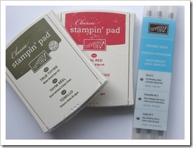 Well I figure 5,000 is a mighty big number (at least in my mind), so it must be time to give away some yummy stamping blog candy so we can all celebrate together. How about 2 ink pads in TRUE THYME and REAL RED (love that combination), and a full set of 3 blender pens (you know how much I LOVE those blender pens!!).